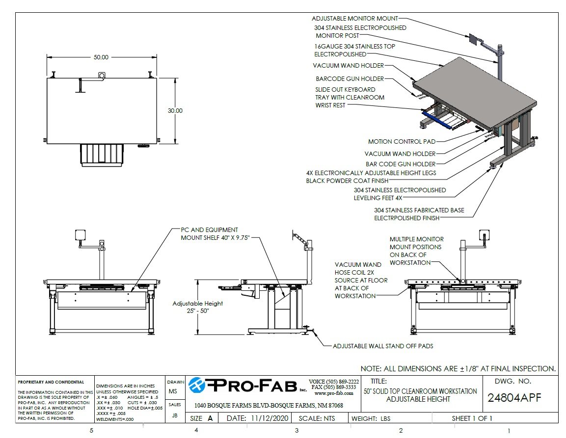 Whether you’re supporting inspection, assembly, quality control, or maintenance operations, Pro-Fab workstations integrate cleanly into your environment and stand up to daily use across both cleanroom and industrial facilities.