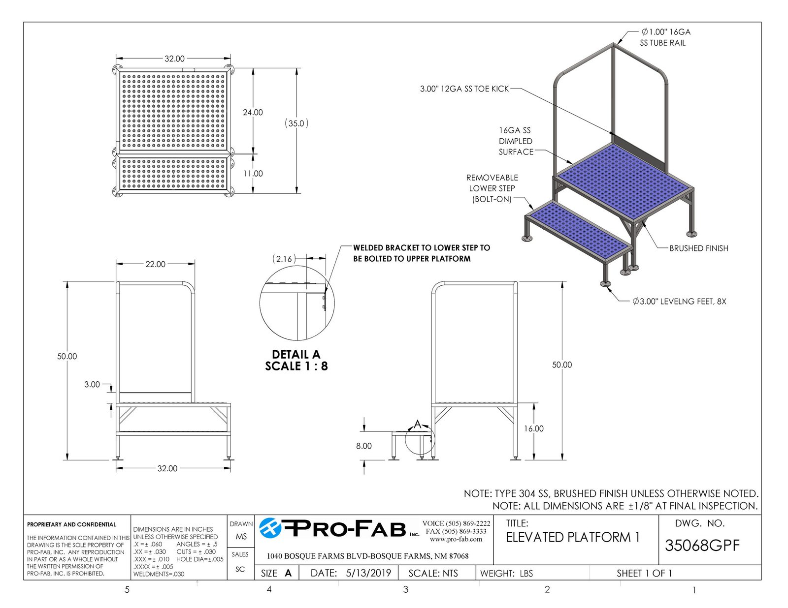 - Punch-and-formed stainless steel tread surfaces for slip resistance