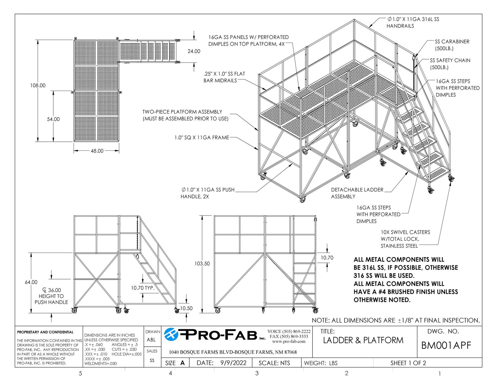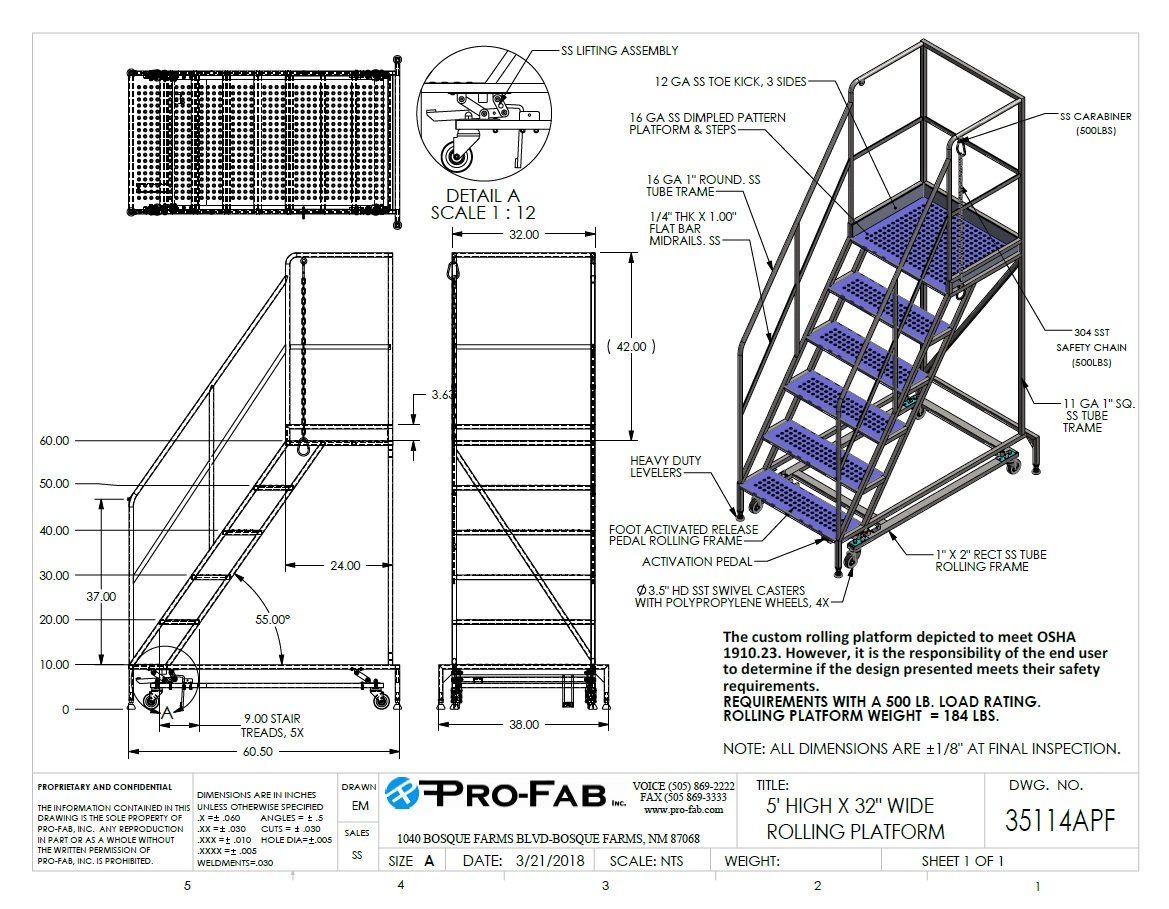 Whether you’re accessing tools, equipment, or elevated work areas, Pro-Fab rolling stairs and platforms are built to move easily, stand securely, and perform safely in regulated environments.